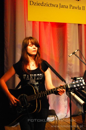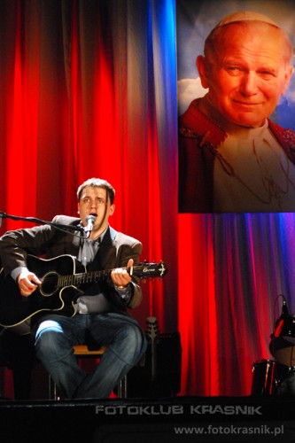 Zamieszczone zdjęcia przedstawiają: "Zagraj Barkę" - imprezę plenerową przed kościołem p.w. Miłosierdzia Bożego. Koncert laureatów V Konkursu Pieśni Papieskiej w CKiP, zakończony autorskim programem Jacka Kadisa i Michała Dzika "Przekroczyć próg nadziei" Fot.: Aneta Sapuła (as), Grzegorz Żak (gz), Lech Dudziński (ld). |